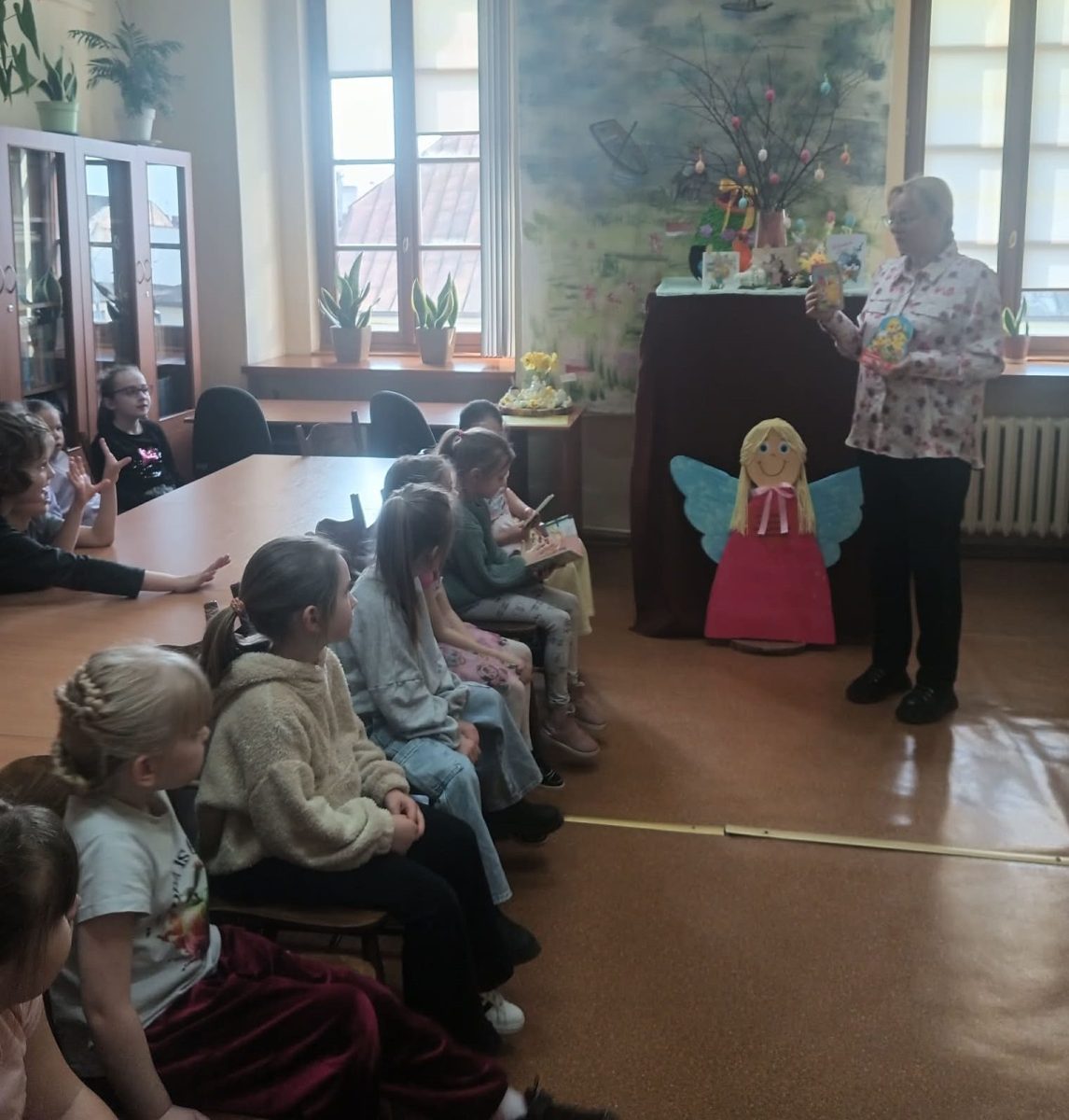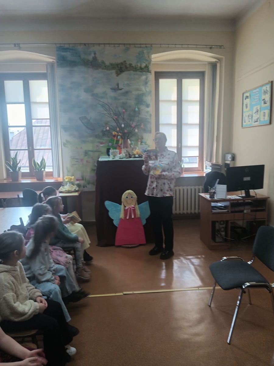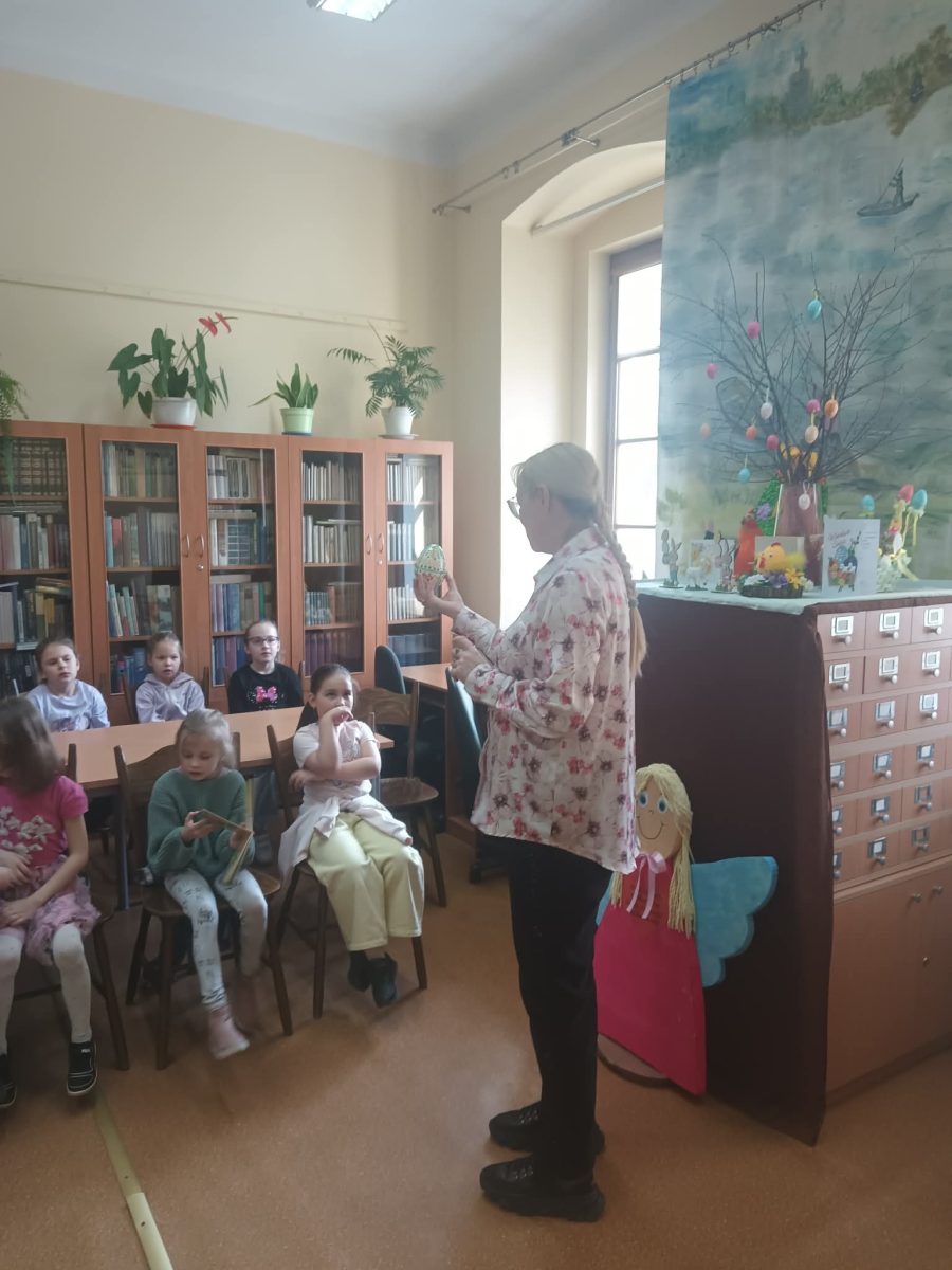 W kolejnej części tego spotkania Pani Ewa Kozłowska z przedborskiej biblioteki przeczytała dzieciom książki o tematyce związanej z Wielkanocą: „Bajeczki Wielkanocne. Zajączek” i „Bajeczki Wielkanocne. Baranek”.
