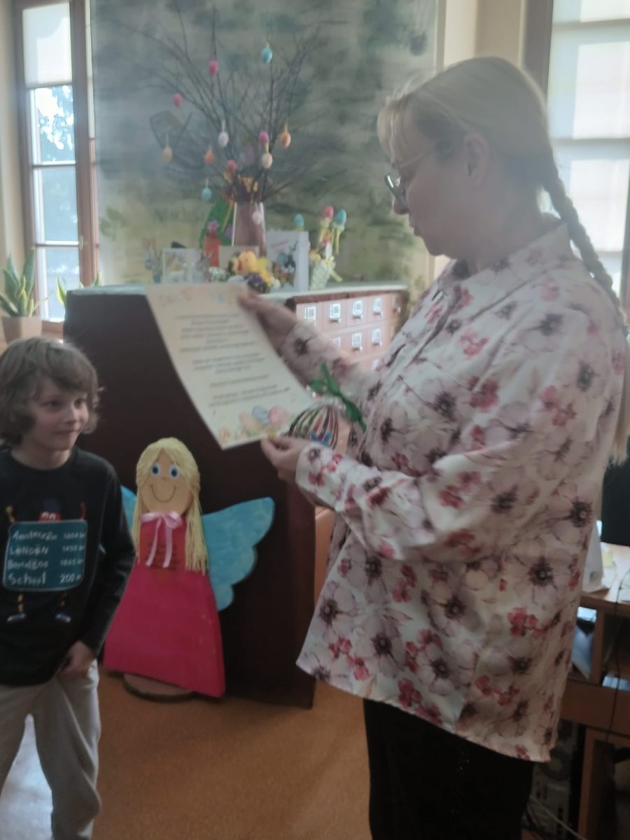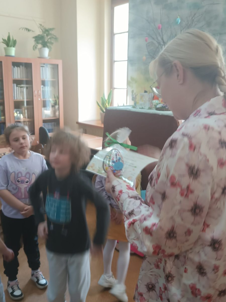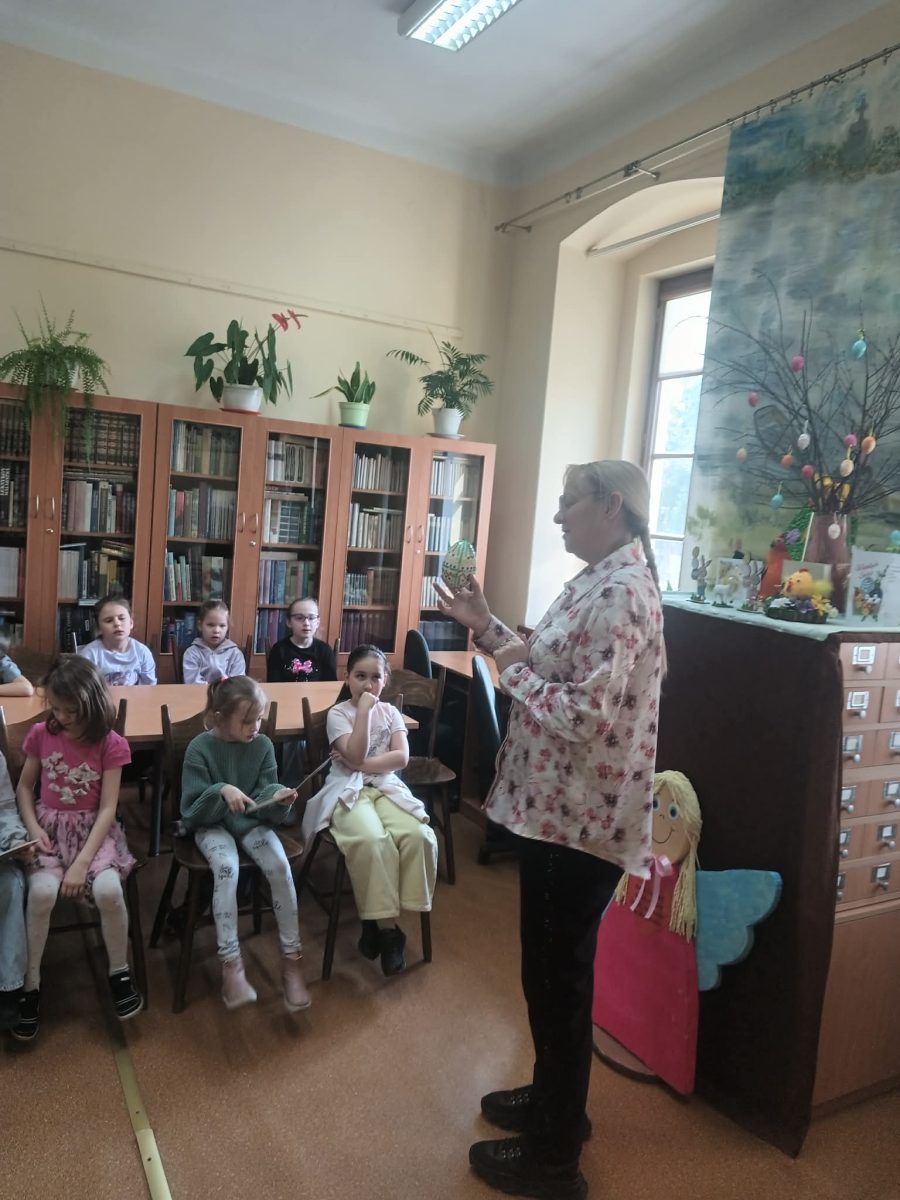 W kolejnej części tego spotkania Pani Ewa Kozłowska z przedborskiej biblioteki przeczytała dzieciom książki o tematyce związanej z Wielkanocą: „Bajeczki Wielkanocne. Zajączek” i „Bajeczki Wielkanocne. Baranek”.