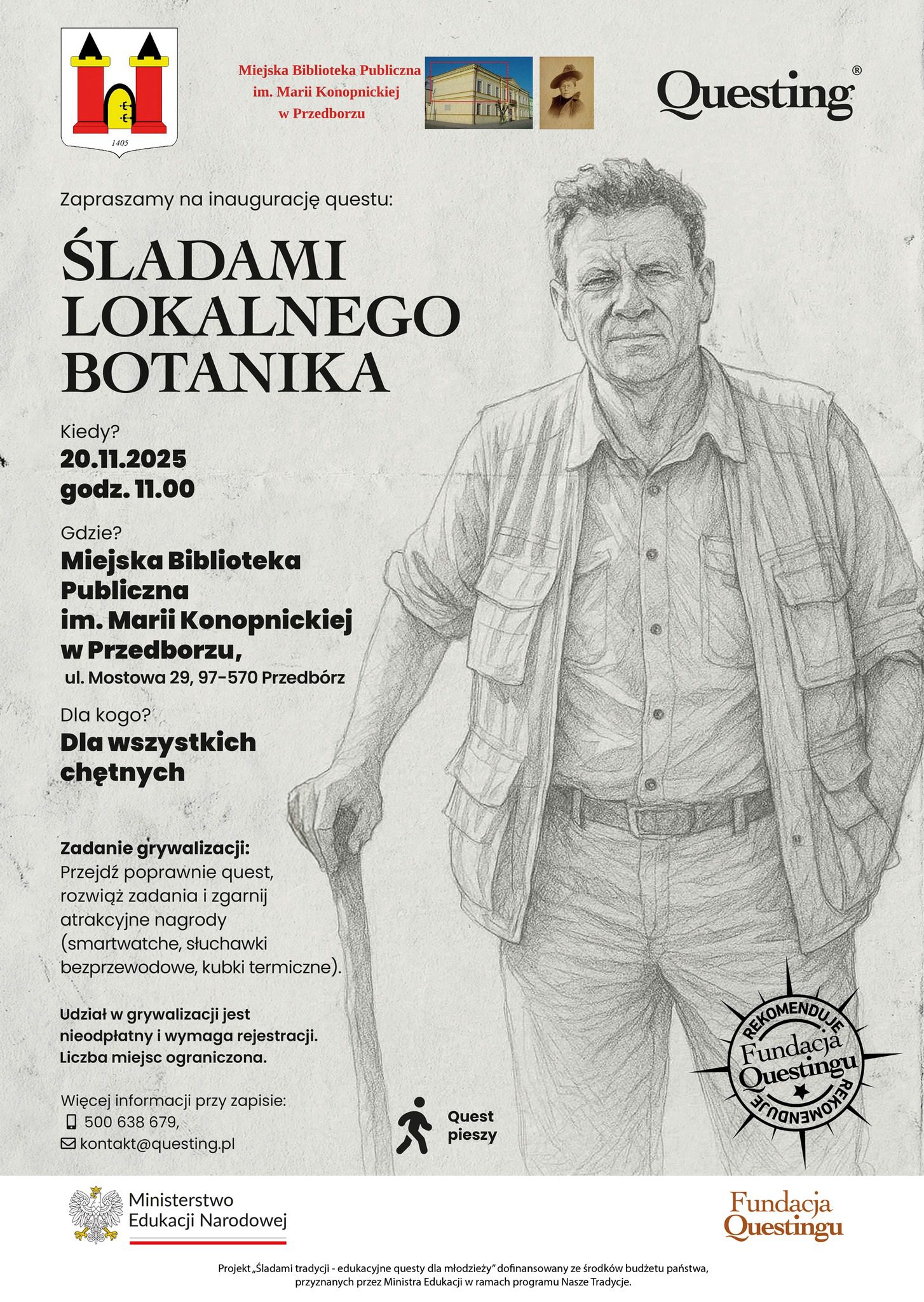 Poznaj przyrodę okolic Przedborza (województwo łódzkie) i wygraj nagrody! W czwartek, 20 listopada o godzinie 11:00, w Miejska Biblioteka Publiczna im. Marii Konopnickiej w Przedborzu rozpocznie się inauguracja nowego questu „Śladami Lokalnego Botanika” – gry terenowej inspirowanej życiem i pasją wybitnego botanika, inicjatora utworzenia Przedborski Park Krajobrazowy – ZPKWŁ – Oddział NPK. Na najlepsze zesp...