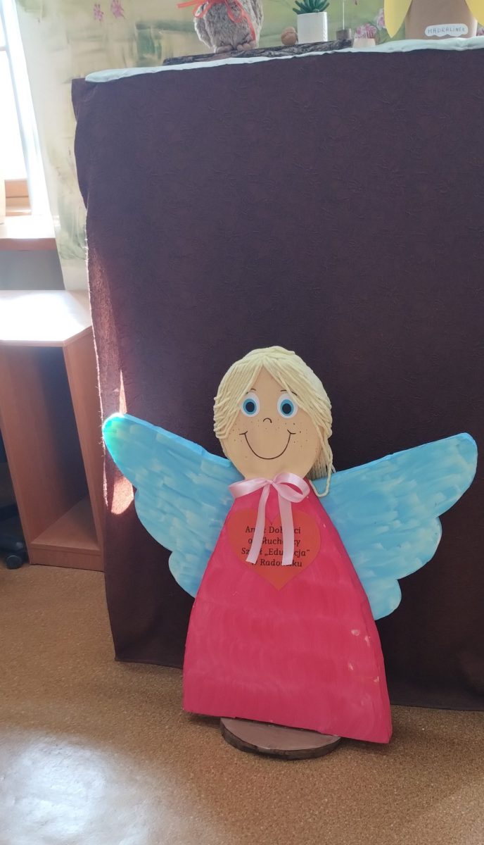 Anioł Dobroci został wykonany przez Słuchaczy Szkół „Edukacja” w Radomsku.