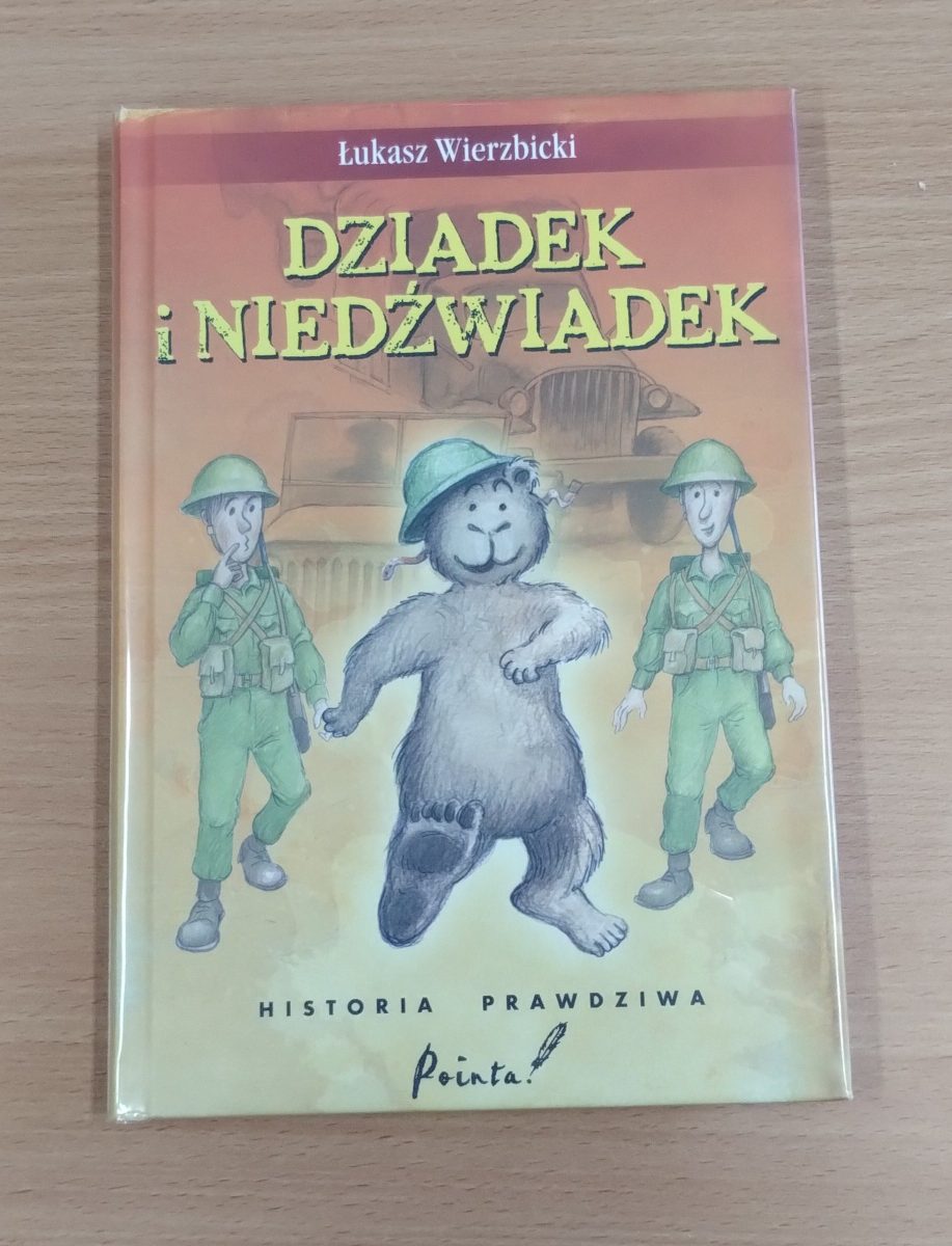 „Dziadek i niedźwiadek” to oparta na faktach książka dla dzieci, opowiadająca o niedźwiedziu Wojtku, który został przygarnięty przez żołnierzy Armii Andersa.
