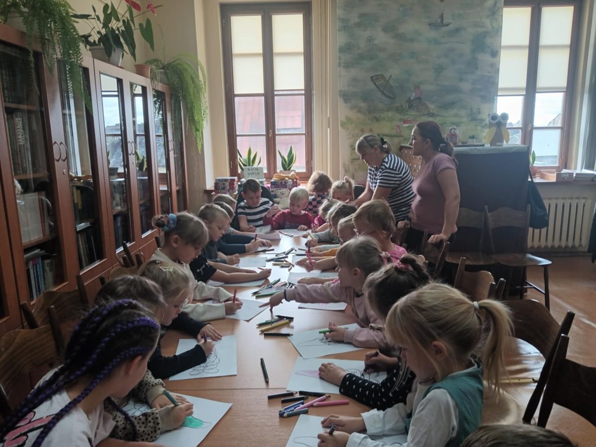 W dniu 27.10.2025r. Miejską Bibliotekę Publiczną im. Marii Konopnickiej w Przedborzu odwiedziła grupa „Wesołe Słoneczka” z Przedszkola Samorządowego w Przedborzu razem z wychowawczyniami.