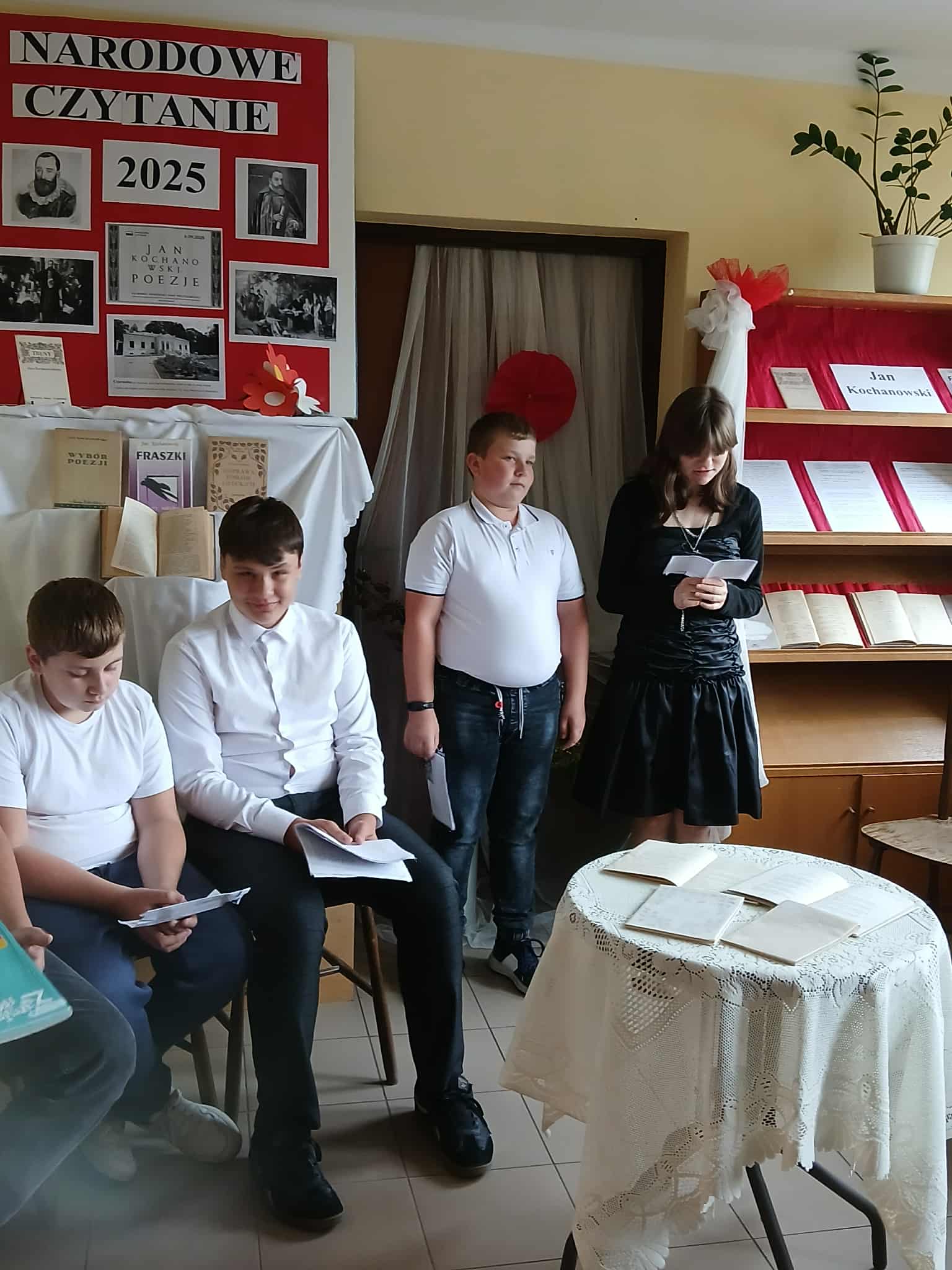 W dniu 30.09.2025r. filię biblioteczną w Górach Mokrych odwiedzili uczniowie ze Szkoły Podstawowej im. Marii Konopnickiej w Górach Mokrych, którzy wraz z Panią Moniką Mechelewską odczytali poezję Jana Kochanowskiego by w ten sposób uczcić tegoroczną akcję Narodowego Czytania. To spotkanie było nie tylko okazją do refleksji nad pięknem języka polskiego, ale także do integracji lokalnej społeczności wokół kultury i tradycji narodowej. ...