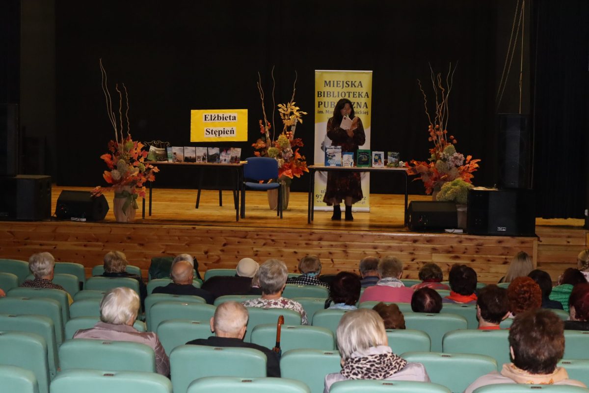 Podczas tego spotkania, Pani Elżbieta Stępień zapoznała zgromadzonych na sali seniorów ze swoją twórczością, na którą składa się nie tylko poezja, ale również powieści dla dzieci, młodzieży i dorosłych oraz w bardzo ciekawy sposób opowiedziała o swoich początkach z pisaniem wierszy i książek.