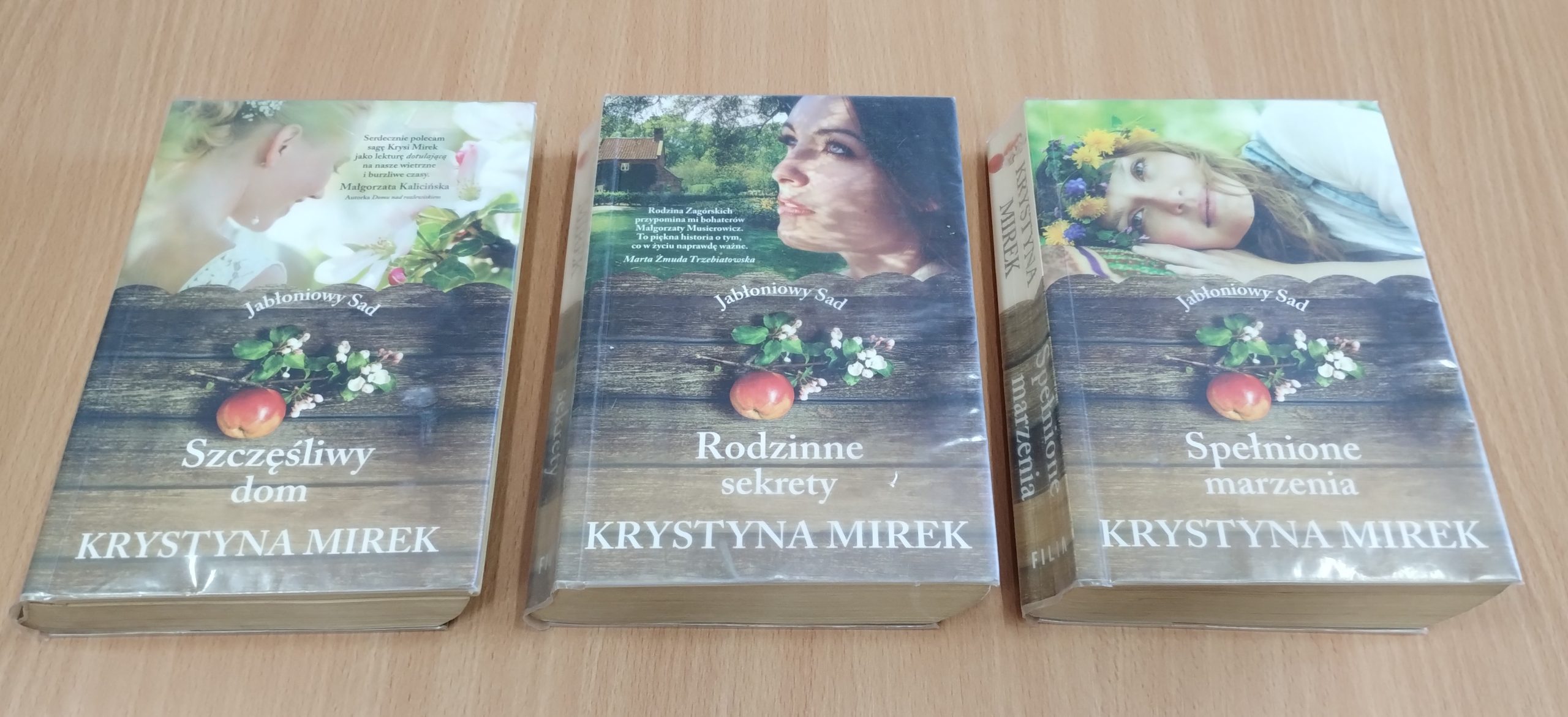 W dzisiejszej fotorelacji prezentujemy trylogię „Jabłonowy sad” autorstwa Krystyny Mirek. Książki te znajdziecie w Miejskiej Bibliotece Publicznej im. Marii Konopnickiej w Przedborzu. Krystyna Mirek – pisarka, autorka książek obyczajowych. Na swoim koncie ma ponad dwadzieścia powieści. Jest absolwentką polonistyki UJ w Krakowie. Przez wiele lat pracowała w szkole, obecnie pisarstwo stało się dominującym zajęciem w jej życ...